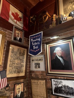 Founding Fathers Pub offers amenities such as Takeout, Delivery, Street Parking, Lunch, Happy Hour, Beer and Wine, Good for Groups, ensuring a comfortable and convenient experience for clients.